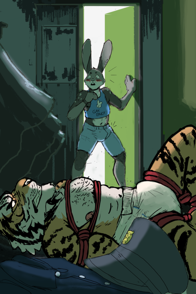 “You got that fucking right,” Bucky said, his voice laced with cruel amusement. He could see the blush spreading across the tiger’s humiliated cheeks, wrestling with arousal from the thought of a rabbit twink, traditionally prey, toying with him while he was forcibly restrained.